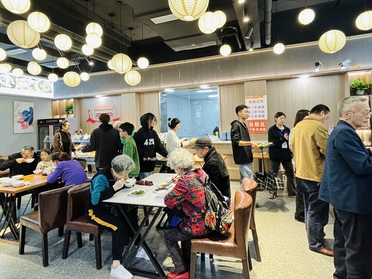 4月8日,在绵阳涪城区工区街道的“1958互助公社”,社区群众、环卫工人、快递小哥等群体闲暇时可在此享受休息、就餐、充电等20多项公共服务。