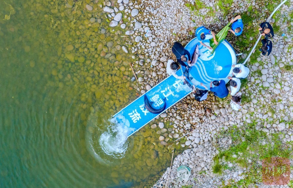 3月22日,科研人员同渔政、长航公安等部门一起,将亲本长江鲟放入改造好的天然水域产卵场中