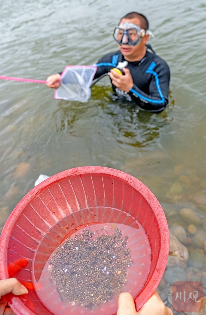 4月7日上午,科研人员潜入长江中顺利取到长江鲟产下的鱼卵,证实了长江鲟自然繁殖活动的发生