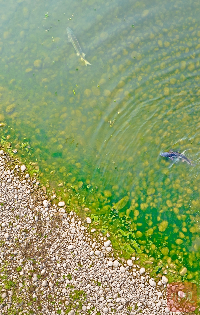 3月27日,两条长江鲟在长江中寻找合适的产卵场