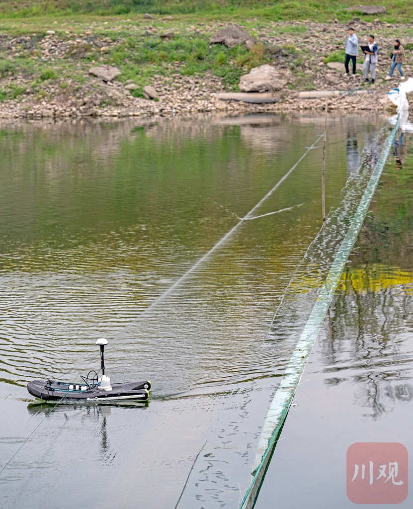 3月19日,科研人员用多普勒测速仪测量水的流速和产卵场地形