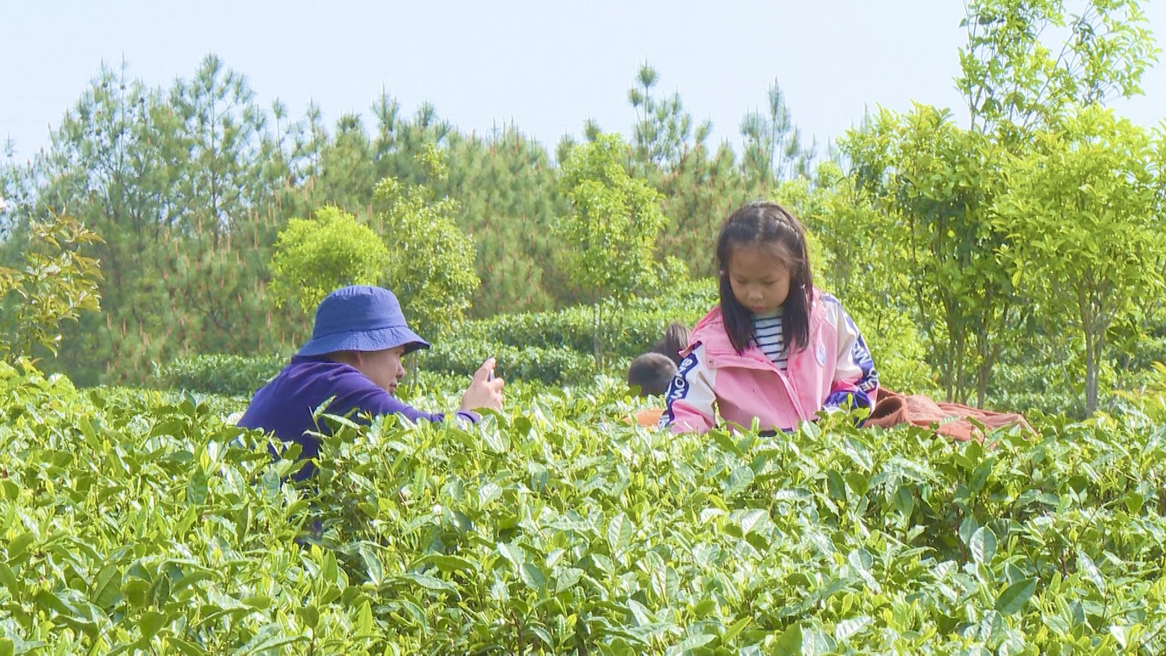 “本来是去亲戚家玩耍,正好遇到村民采茶,刚好天气好,吹着风、晒着太阳,想体验一下采茶乐趣,于是我们一家人加入这个队伍。”游客陈煜乔说。