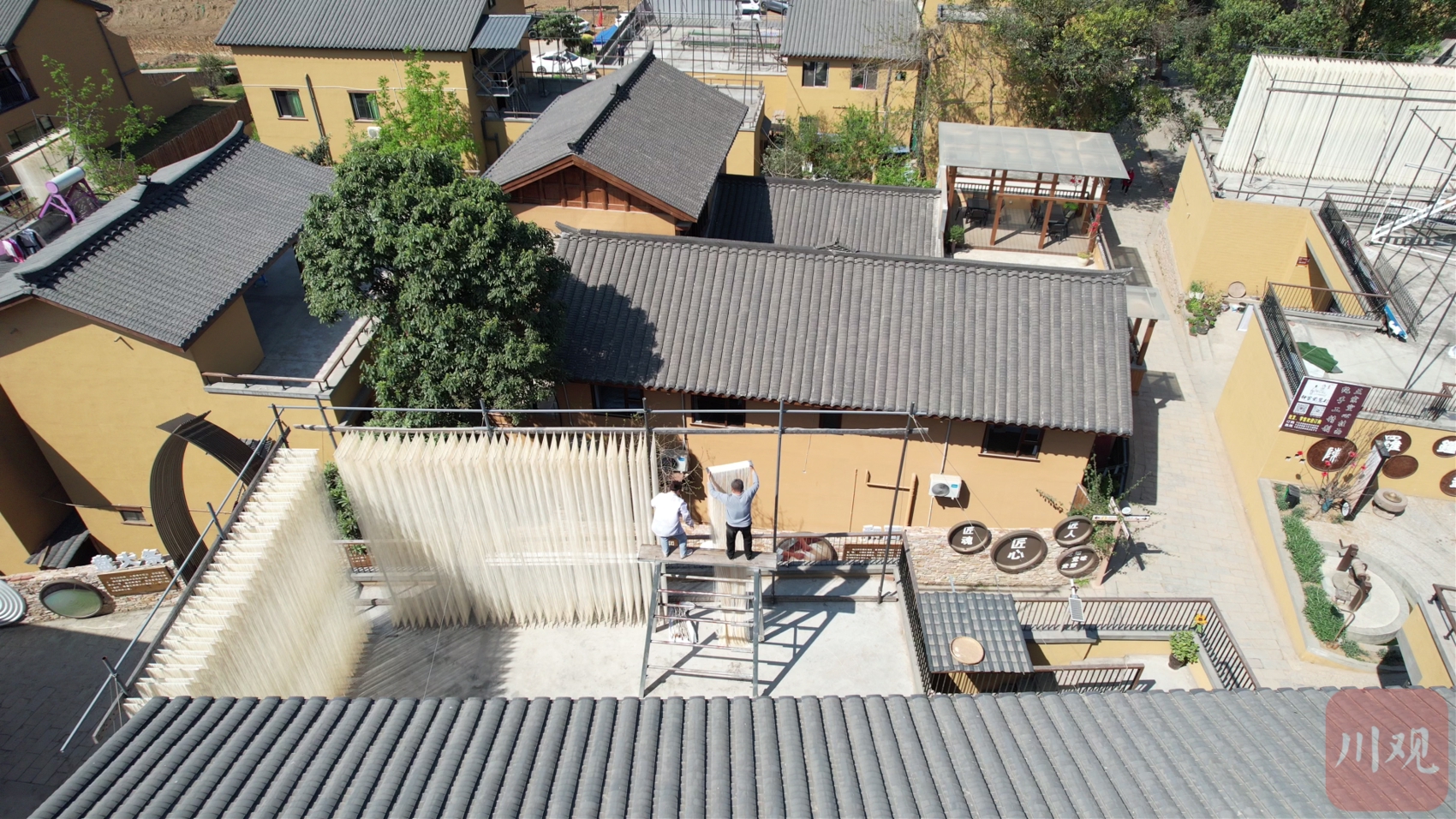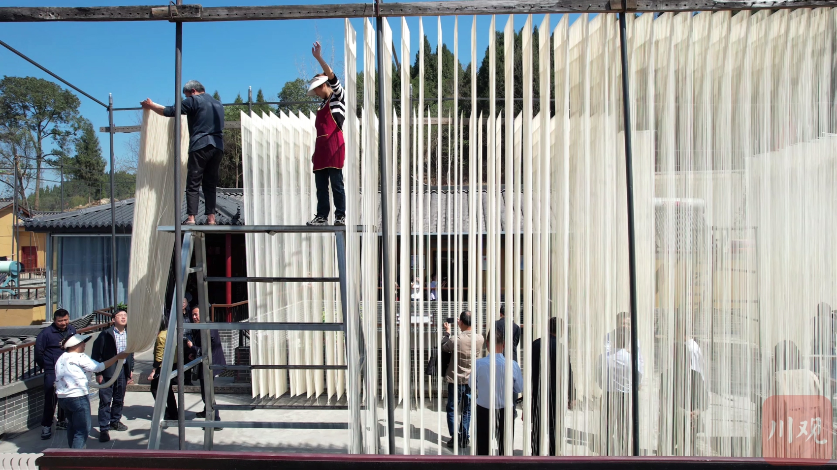 接近正午,匠人们回收晾晒的中江挂面。 王攀 摄