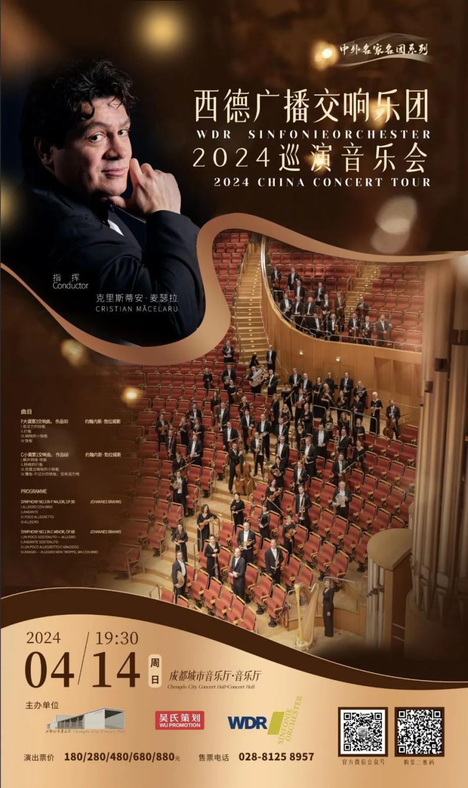 4月14日,德国著名交响乐团——西德广播交响乐团(WDR Symphony Orchestra)将亮相成都城市音乐厅,在乐团首席指挥克里斯蒂安·麦瑟拉的带领下,为蓉城乐迷带来德国浪漫主义作曲家约翰内斯·勃拉姆斯的经典作品。