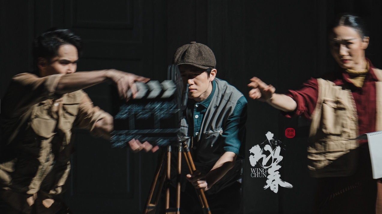 台上架起灯光,生动再现了电影片场;灯光下好戏不断,电影镜头里正在讲述香港七十二房客故事……当晚舞台上,通过蒙太奇、升降格、景别变化等电影拍摄技巧,舞剧《咏春》将“电影语汇”与舞台艺术表达融会贯通。