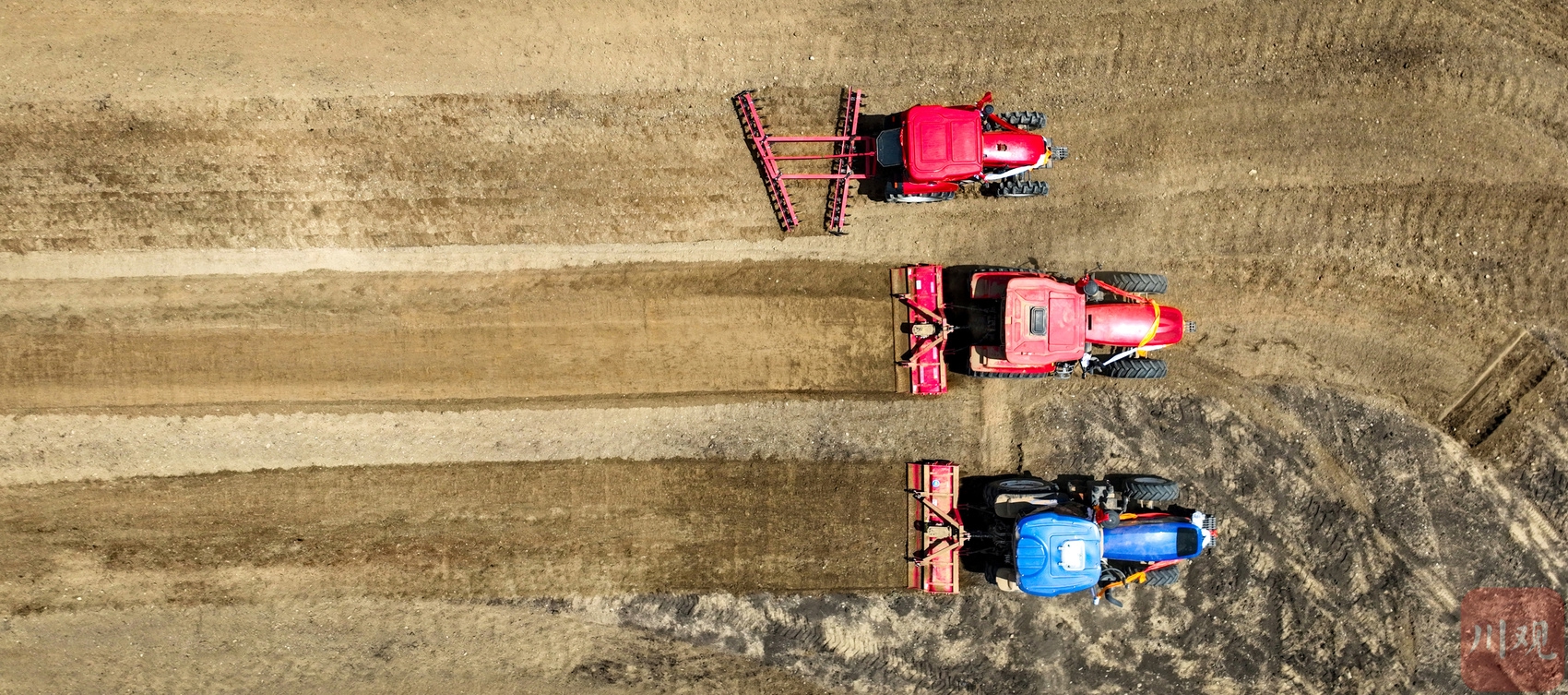 开耕机、旋耕机等大型农机协同工作。