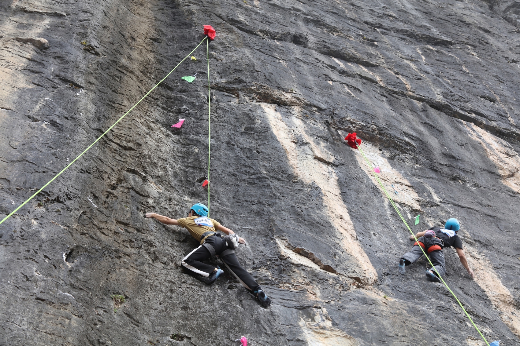比赛中,选手们闪穿梭于岩壁之上,全力向最高处攀登。最终,精英组自然岩壁男子攀岩难度速度赛中,宋枭夺得冠军,董益铭、彭万冰分获亚军和季军。巫丽娟斩获精英组自然岩壁女子攀岩难度速度赛冠军,郑天乐、卢思炎分获亚军和季军。