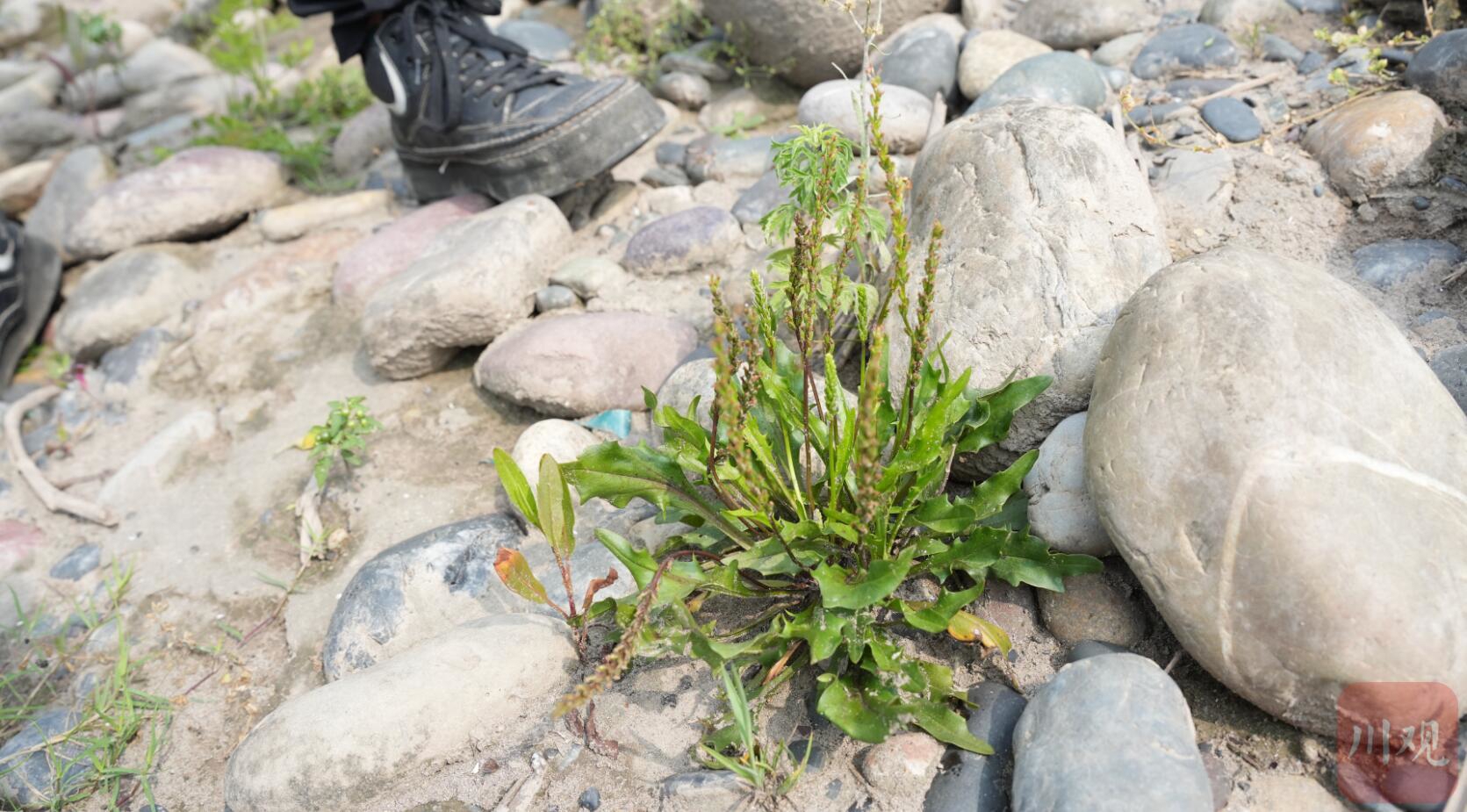 “这边有一株,应该是去年底退潮之后才长起来的,赶紧记录一下!”4月17日上午,宜宾市江安县香炉滩,宜宾江安长江协助巡护队队长周涛和同伴在光滑的鹅卵石间,发现了有助于水土保持的珍稀濒危植物疏花水柏枝的新身影。香炉滩是长江中一片面积不大的湿地,也是鱼类活动、繁殖的栖息地,周涛每周都要来这里监测动植物生长情况。