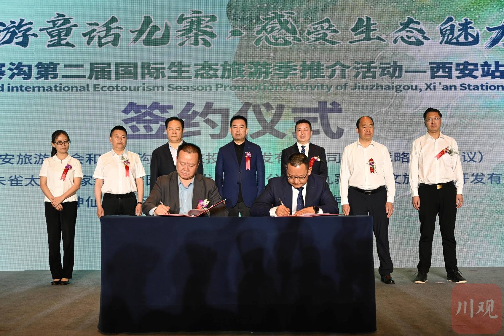 活动现场,九寨沟县文旅投资开发有限公司分别与西安市旅游协会、西安秦岭朱雀太平国家森林公园旅游发展有限公司签署战略合作协议。九寨沟将与西安旅游协会在经营咨询、品牌推广合作、招商引资、宣传旅游品牌等方面进行合作,与西安秦岭朱雀太平国家森林公园旅游发展有限公司,双方将在旅游线路共联、旅游产品共推、旅游客源共享、旅游服务共鉴、旅游品牌共建等方面进行合作。
