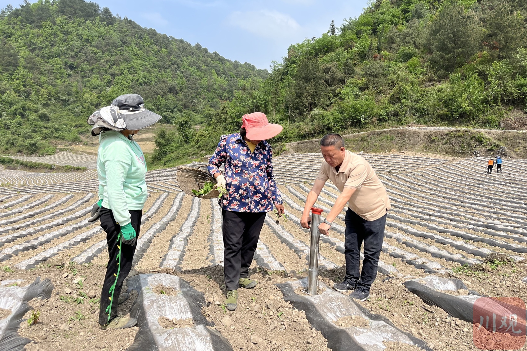 “行距120厘米,窝距50厘米,起垄土块要细碎均匀,垄面平直,沟底要深浅一致。”4月18日15时,泸州市古蔺县双沙镇庆丰村3组村民余世乔家的烤烟种植基地,指导烤烟种植的技术人员袁强手把手给他示范着种植过程。