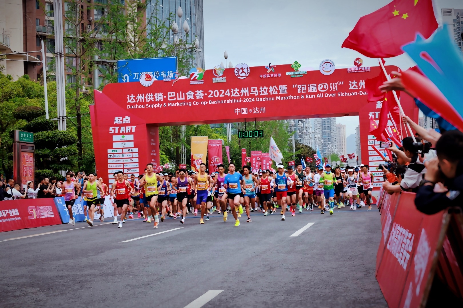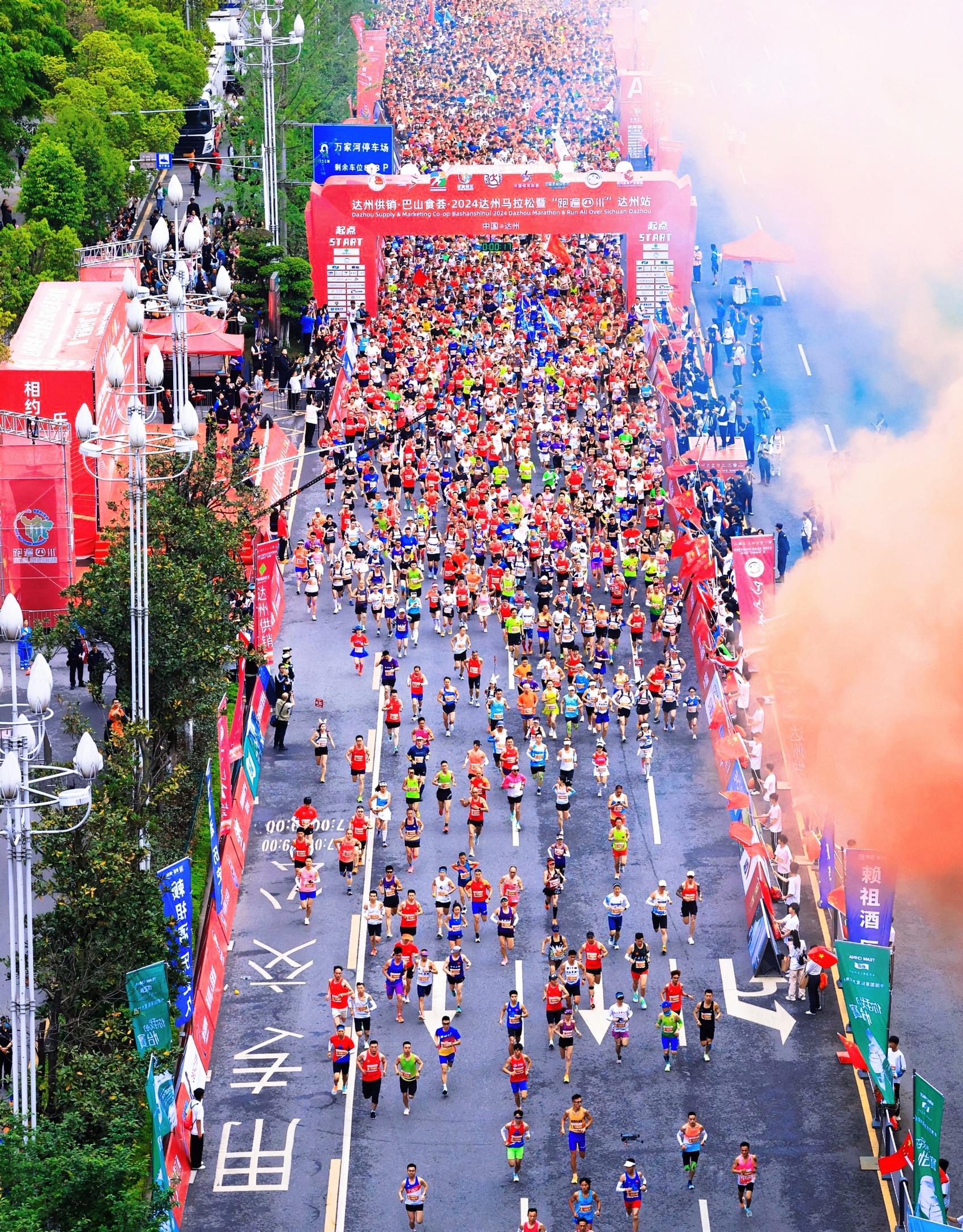 4月21日早上7点,约15000名跑友在起点集结完毕,达州供销·巴山食荟·2024达州马拉松暨“跑遍四川”达州站鸣枪开跑。