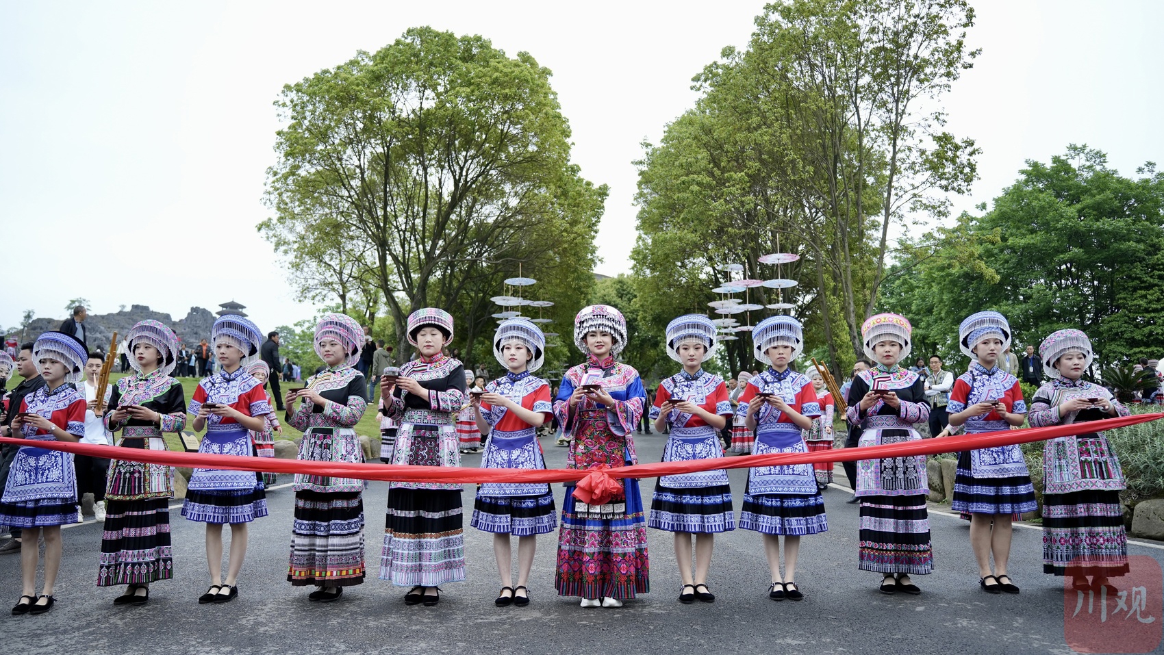 开幕式现场,苗族儿女身着盛装站在纵横交错的石海涌浪中,依次上演《浪漫石海》《笙动兴文》《鼓舞中国》等实景表演节目,歌声悦耳、芦笙悠扬、舞蹈蹁跹,为现场观众带来一场视觉与听觉的盛宴。兴文县还被授予“大学生社会实践基地”和“四川省铸牢中华民族共同体意识研究基地兴文县分基地”牌匾。