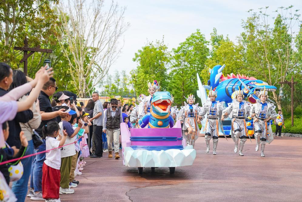 活动期间,园内以“赛博朋克+原始时代”进行视觉呈现。游客既可以在“引力时空”“恐龙音乐墙”“时空穿越”等赛博风“网红地”打卡,与“AI驯龙师”“恐龙NPC”亲密互动;也能在“恐龙音乐会”“青铜幻影秀”上载歌载舞,一起感受赛博朋克与原始时代交织的奇幻体验。此外,“赛博恐龙大巡游之未来世界”巡游队伍阵容升级。熊强三人组将带领三大机甲恐龙花车、未来战士、恐龙乐队、AI驯龙师等组成的全新方阵,在“五一”假期亮相园区。