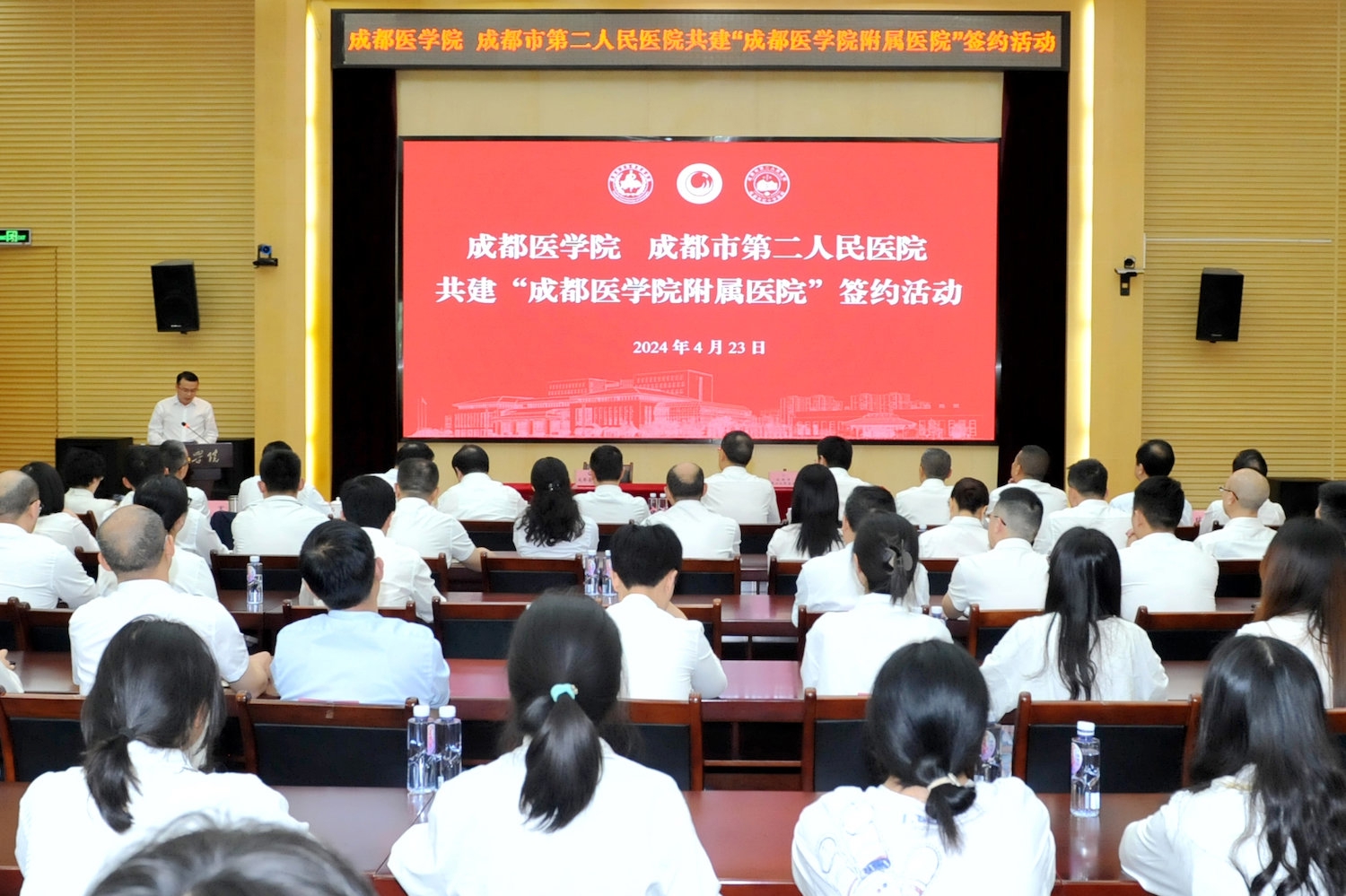 4月23日下午,成都医学院在新都校区与成都市第二人民医院签署共建“成都医学院附属医院”协议。