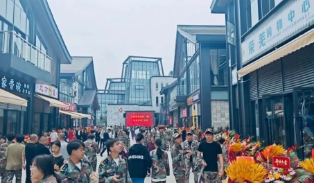 近日,在绵阳市北川羌族自治县龙翔大道,随着极具仪式感的围挡拆除和整齐的鸣炮声,一个集航空与民族艺术融为一体的多元化国潮街区新空间——北川沙朗恰民谣街正式开街。