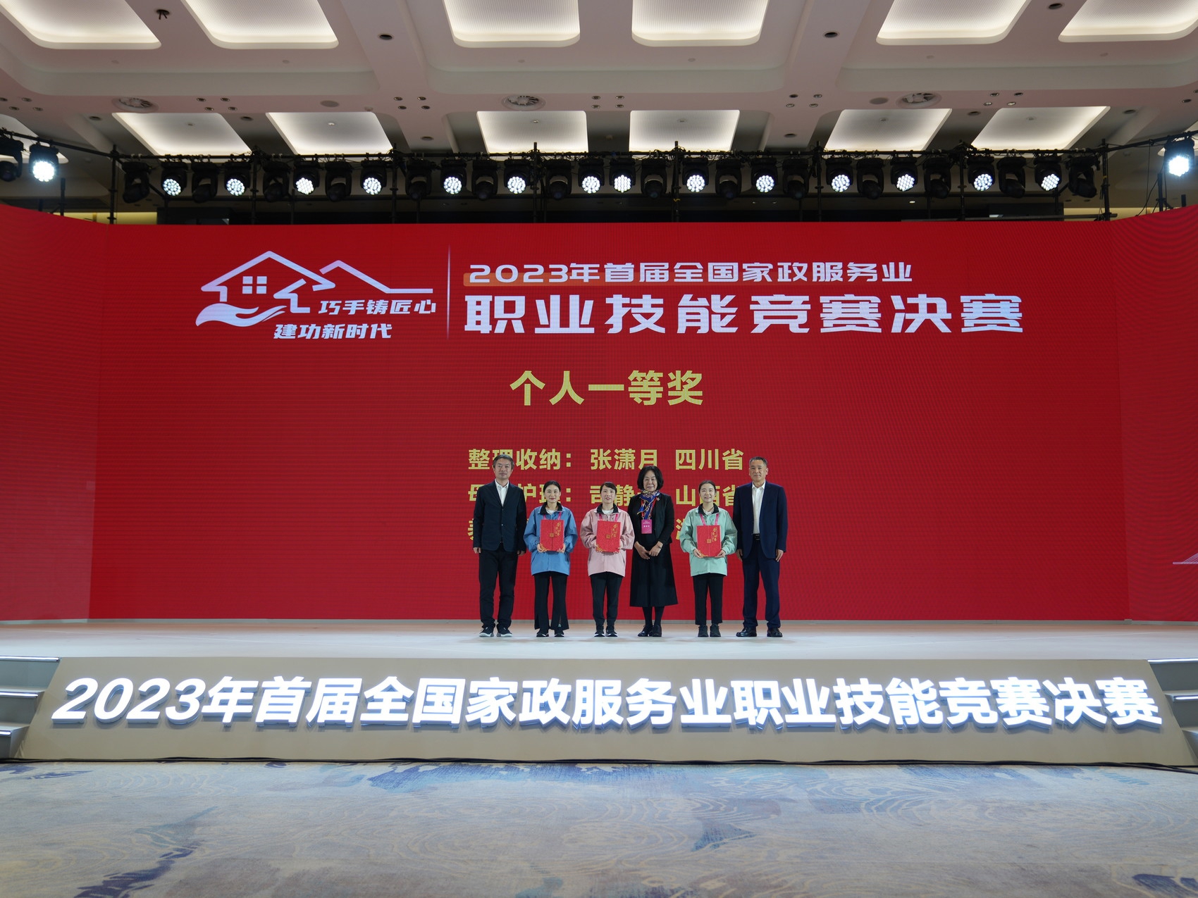 2023年7月至11月,张潇月先后参加了成都市、四川省及全国家政服务业职业技能竞赛。凭借细心、专注与丰富的经验,她一路过关斩将,突出重围。“当听到最终成绩是全国第一时,我有点恍惚和诧异。”张潇月坦言,虽然在市级和省级比赛中取得不错的成绩,但从没想过自己会拿全国第一。