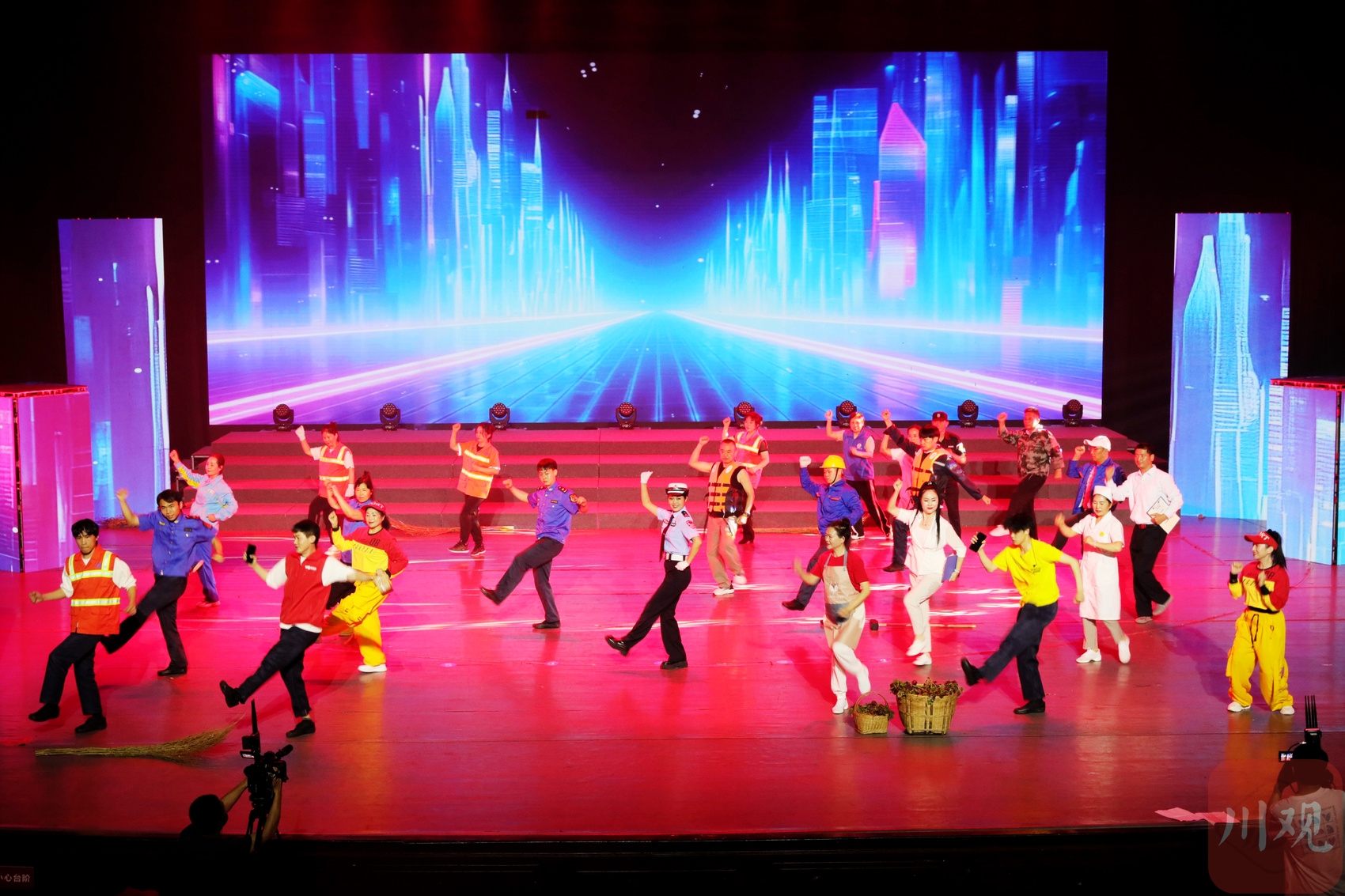 表扬大会上,受到表扬的90名劳动者与广元市民一起,观看了舞台剧《劳动赞歌》。