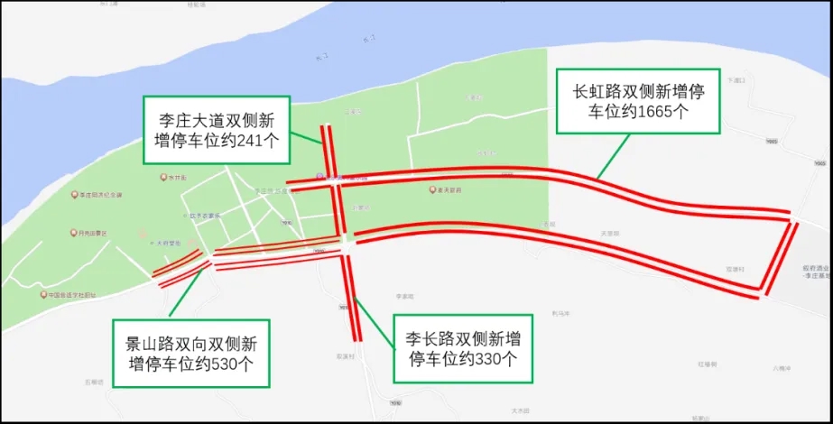 增设景山路、李长路(往长宁方向1公里范围)、李庄大道、长虹路(世纪名苑—李庄影视城)临时占道停车停车位。(李庄片区为宜宾市中心城区范围内重点旅游景点,假期期间协调学校、部分企事业开放单位停车场,预计可用路外停车停车位2700个。)