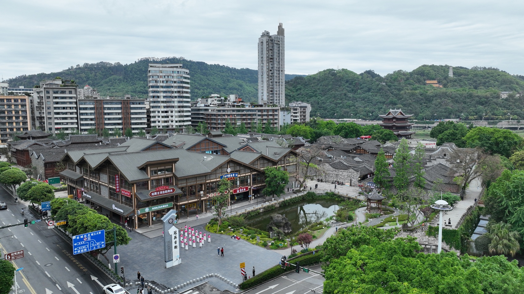 冠英街二期项目是宜宾市推进文旅融合发展的重要组成部分。冠英街二期项目东临合江门广场,南临冠英街一期,北临合江街,西临城市主干道大南街,总用地面积17.83亩,采用仿宜宾地方民居、古建筑风格设计,展现该区域的文化内涵、商业氛围以及环境品质。游客游览其中既能品味宜宾古城的厚重历史,又能感受到现代商业年轻活力。
