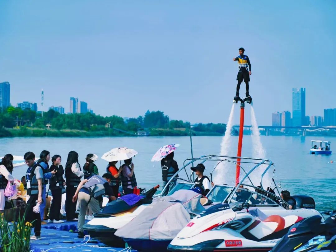 此外,4月28日正式开园的黄金江岸度假区举办活动20余场,成为吸引市民打卡的“新晋网红”。度假区提供浆板、帆船、皮划艇、摩托艇、水上飞人等十余种水上运动,“五一”假期期间接待游客30万人次,单日高峰游客约7万人次,水上基地消费总计约21万元,辐射带动“嘉优好市”商业区消费总计约47万元。