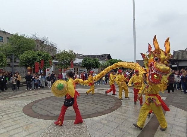 舞龙、坝坝宴、汉婚表演、赵娘说媒、传统点茶、打歌舞……“五一”期间,千年古镇赵化,以厚重的历史文化为背景,设置了丰富多彩的文化表演活动,吸引了大量游客参与,人气火爆。古镇内,蜂拥不绝、摩肩接踵、人声鼎沸,游客纷纷驻足到文保景点、小品景观、“网红”点位打卡,表演音乐和拍手叫好声此起彼伏。