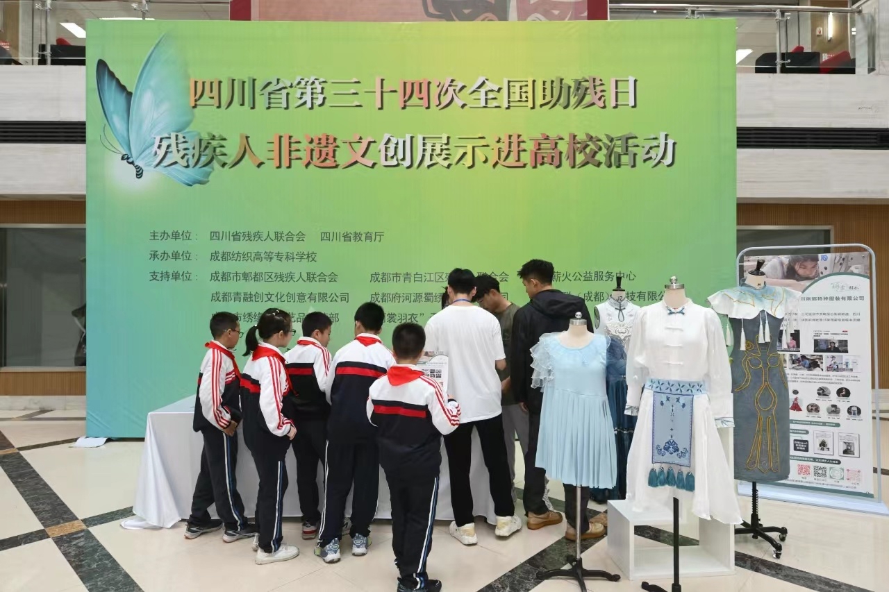 5月8日,“弘扬正能量 奋进新征程”四川省第三十四次全国助残日励志宣讲暨残疾人非遗文创展示进高校活动在成都纺织高等专科学校举办。现场展出了上百件由残疾人制作的精美非遗文创作品,还有蜀绣非遗传承人现场进行展演,吸引了不少师生点赞。