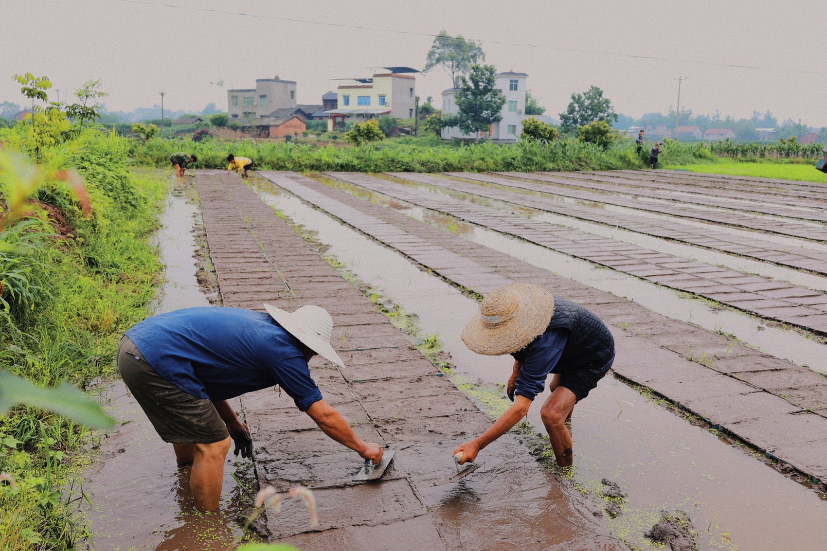 5月7日,零星的小雨,时停时下。在泸县方洞镇水稻田里,稻苗顶着水珠,长势喜人。在这片希望的田野上,劳作的人们点缀其中,张张笑脸、声声吆喝,让川南耕种图景变得灵动起来。