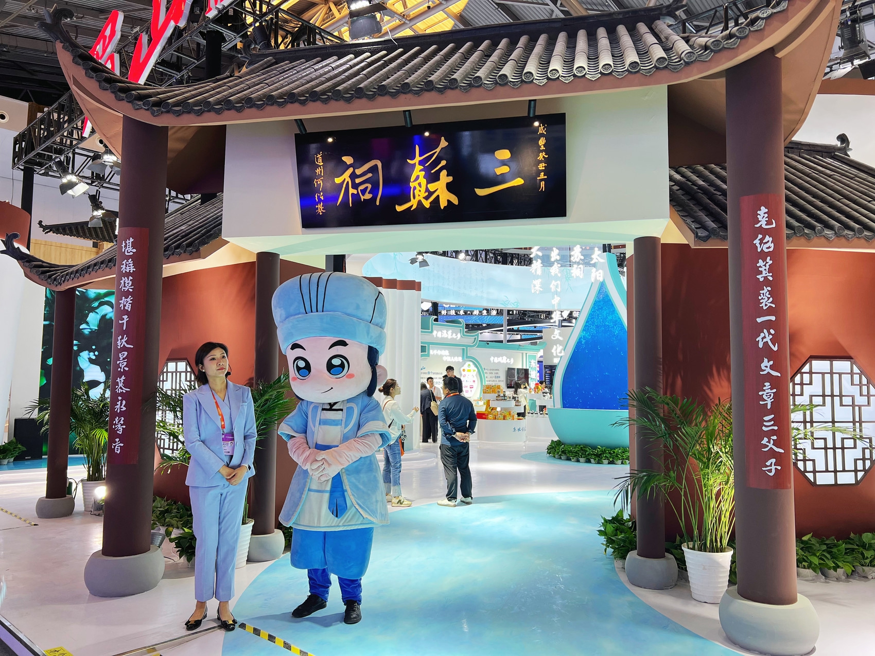 走近眉山馆,首先映入眼帘的便是三苏祠古色古香的大门,厚重的历史文化气息扑面而来。馆内,以“东坡故里·天府眉山”为主题,围绕产品和品牌展示,设置了“东坡故里”“东坡制造”和“东坡味道”三个板块,参展企业20余家,参展商品30余个。