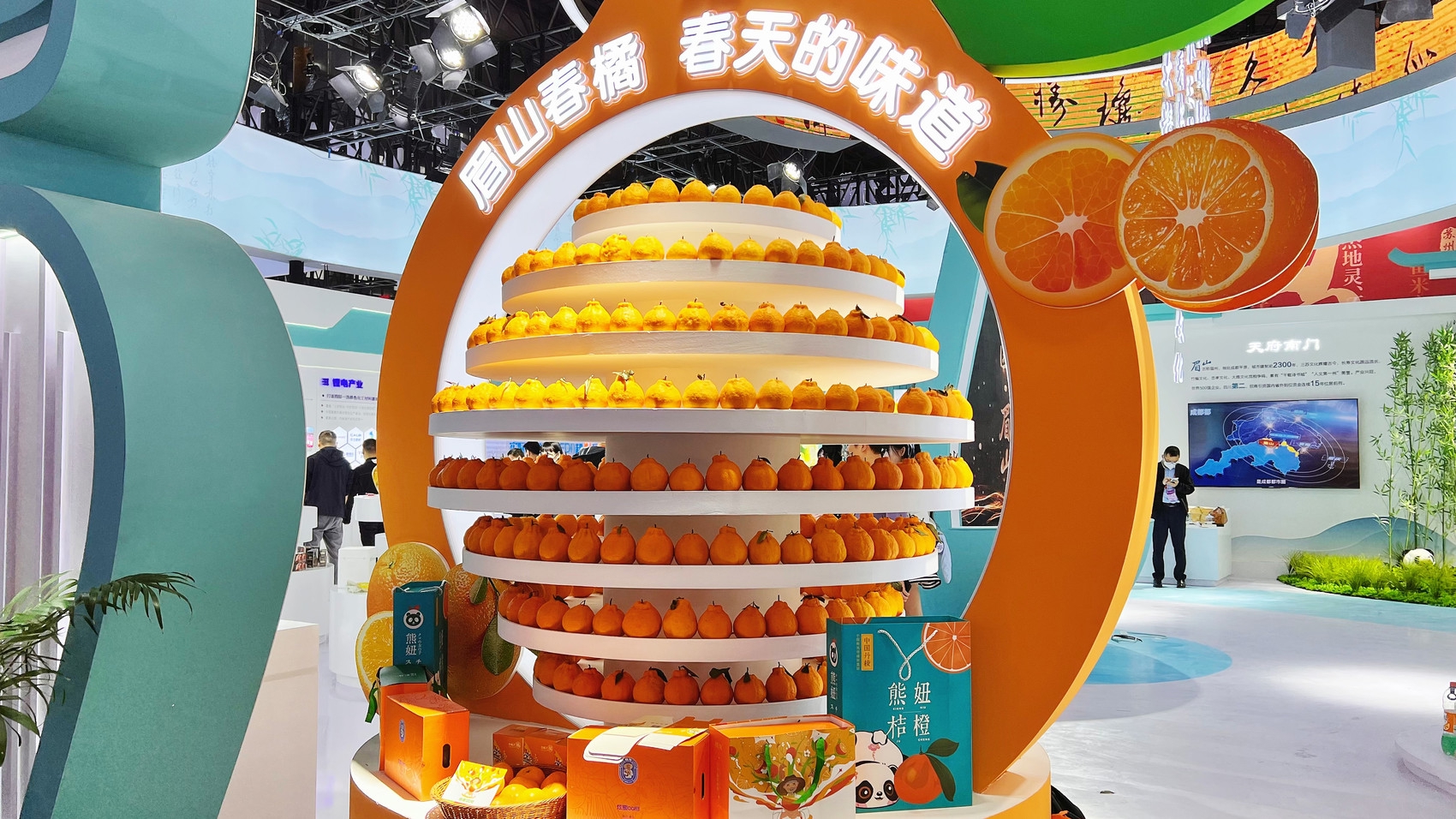 其中,“东坡故里”展示眉山“天府南门”“桌山之城”“沉银宝地”“竹编之乡”的城市品牌形象和“东坡文化”。“东坡制造”板块集中展示眉山“1+3”主导产业,特别是新能源新材料这一产业品牌。“东坡味道”板块展示了眉山打造新时代更高水平“天府粮仓”示范区成就和农产品及食品加工产业领域的优质品牌,其中“东坡大米”“眉山春橘”“眉州东坡”“东坡泡菜”等农产品区域品牌、全球知名餐饮品牌也纷纷亮相。