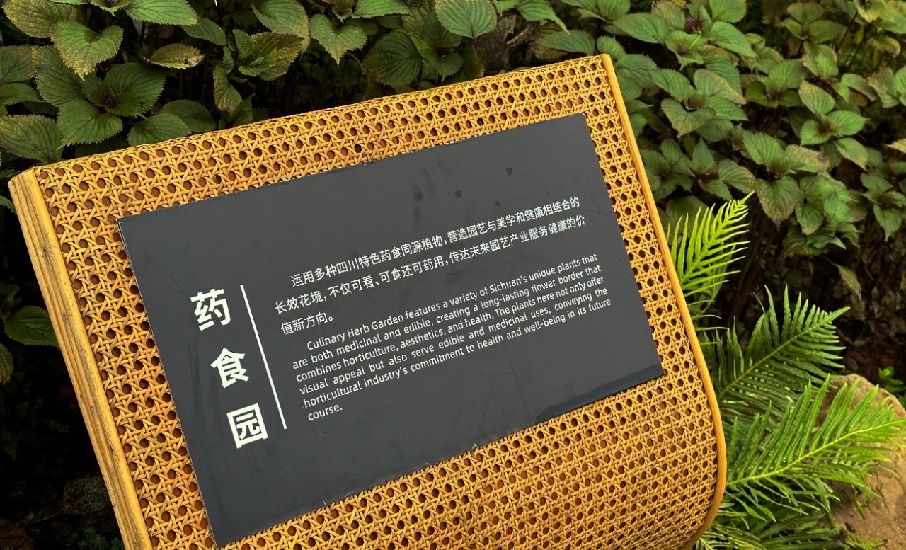 逛成都园的时候,记者在台阶旁发现一块宝藏花境里面栽种着大量奇特的药食同源植物。