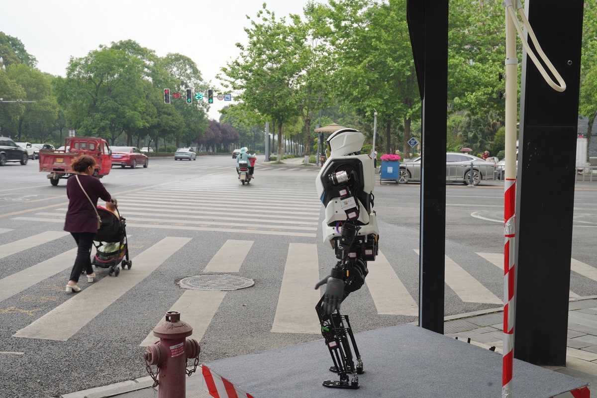 “这是红灯不是红包,不要抢,不要抢。”“绿灯绿灯,火腿甩起来!火腿甩起来!”……5月10日,在绵阳科技城新区(以下简称新区)九洲大道与园艺街交叉路口,由新区企业——绵阳乐聚机器人技术有限公司(以下简称“绵阳乐聚机器人”)制造的人形机器人操着一口流利的四川话,提示路过行人安全文明通过斑马线。