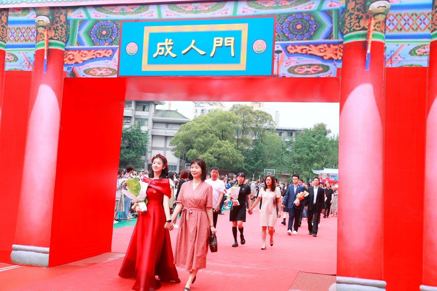 成都树德中学党委书记胡霞给这群迈进成人门的学生们送上祝福。她说,成人之美,美在反哺感恩,美在责任担当,美在家国情怀。树德人要用心去感应时代的强劲脉搏,要把对祖国血浓于水、与人民同呼吸共命运的情感贯穿在学业事业的全过程,融汇在奋进人生的全视野。