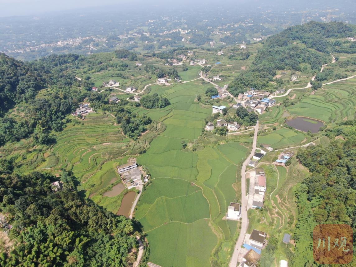 时下,宜宾市夕佳山镇的稻田里绿意浓浓,成片的秧苗随风摇曳、长势正旺,远远望去如同一片翠绿色的稻浪。