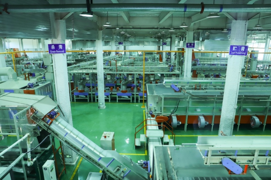 “目前全流程生产线上融入的专利都是我们自主研发的。更优质的生产工序,更节能环保的数字化控制面板,都能为企业节能增效。”提起茶叶生产线,华义生物副总经理方珂打开了话匣子。目前打造的3条智能化生产线,分别是智能化大宗红茶、大宗绿茶初加工与茶叶精制加工生产线,实现了从原料到成品的全程自动化控制,能同时处理四季不同的茶叶品类,制作出不同标准的成品干茶。