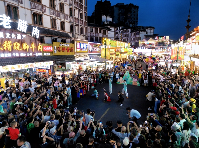 乐艺大舞台走进乐山张公桥美食街,人潮涌动。胡威 摄