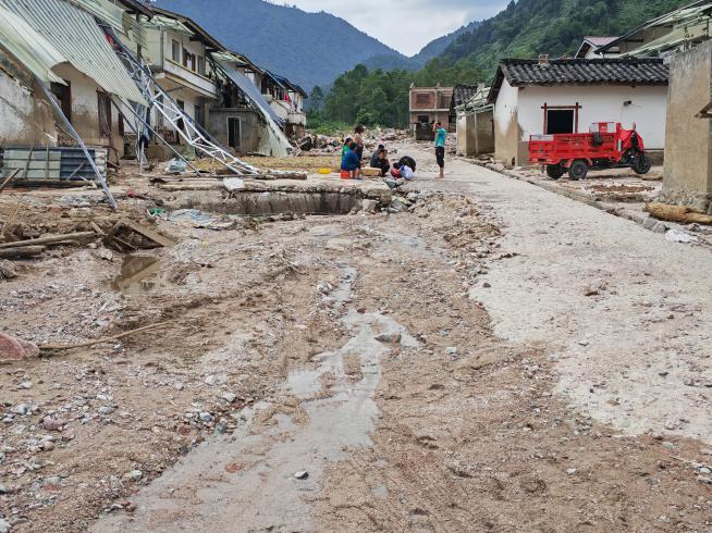 2023年6月26日21时50分,因强降雨导致发旺村2组雨洒坪暴发泥石流,大部分农户厨房、圈舍等附属设施被冲毁。(泸定县委宣传部 供图)