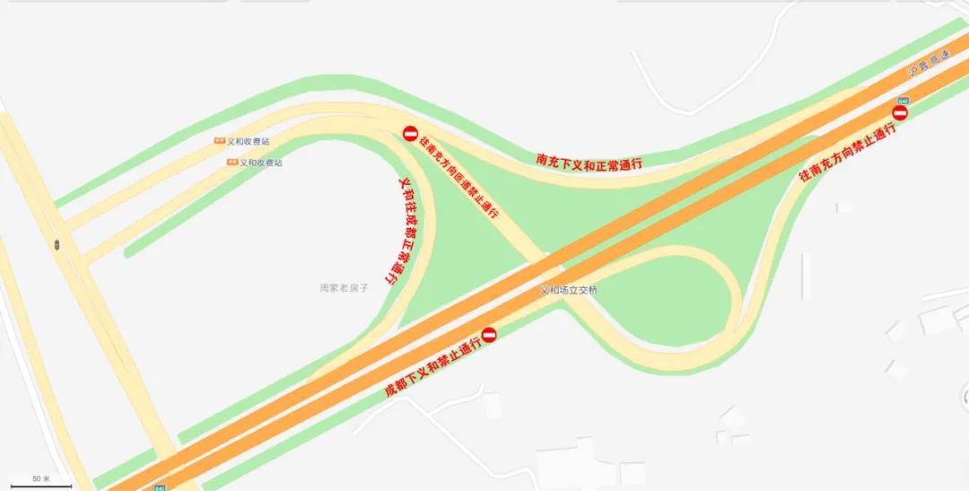 自2024年5月27日9时起至7月15日24时,将临时封闭G42沪蓉高速公路义和收费站(成南向)下义和匝道、封闭义和收费站往南充方向匝道。
