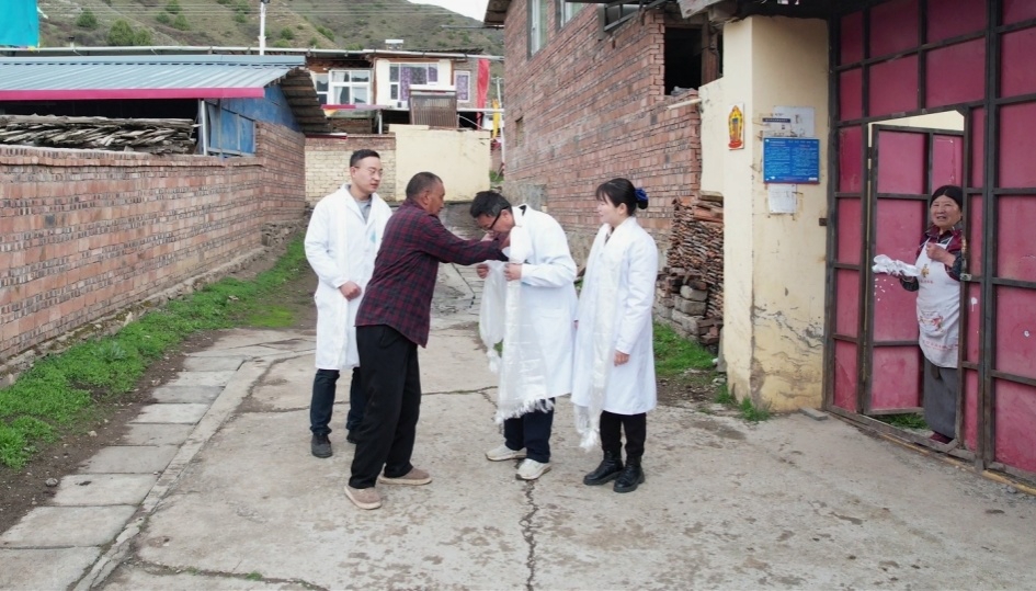 术后大骨节病患者为上门巡诊的德阳医生献上哈达。 王攀 摄