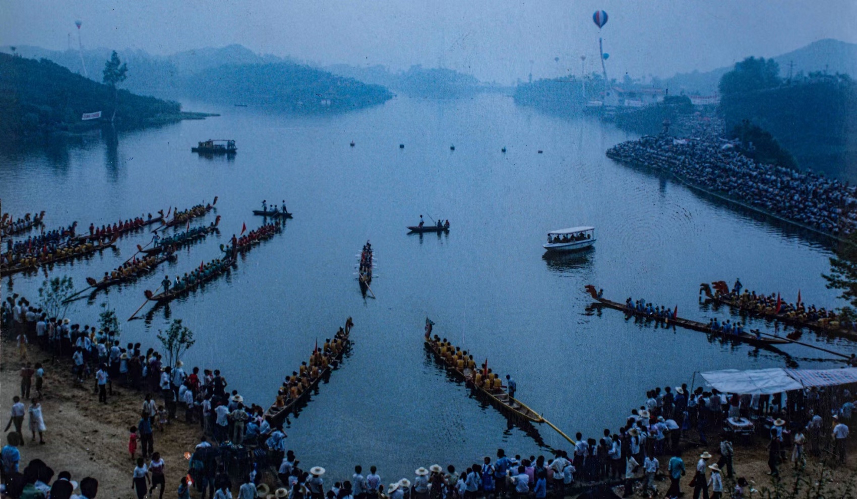 1998年,达州市通川区在莲花湖举办的端午龙舟赛。柏在田/摄