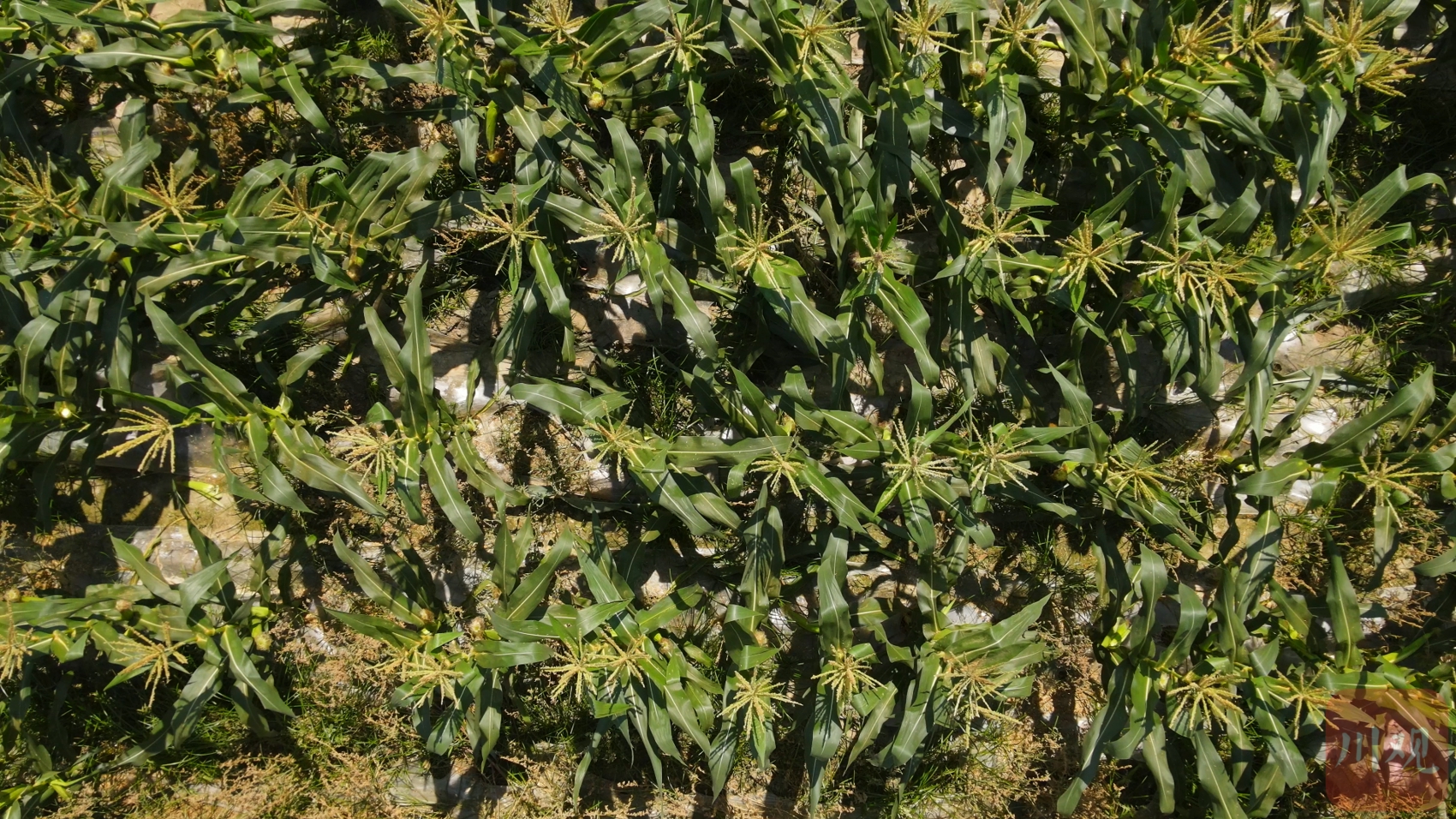 5月22日,遂宁市船山区唐家乡东山村,一片片翠绿的玉米地生机勃勃,金黄色的花穗随风摇曳。