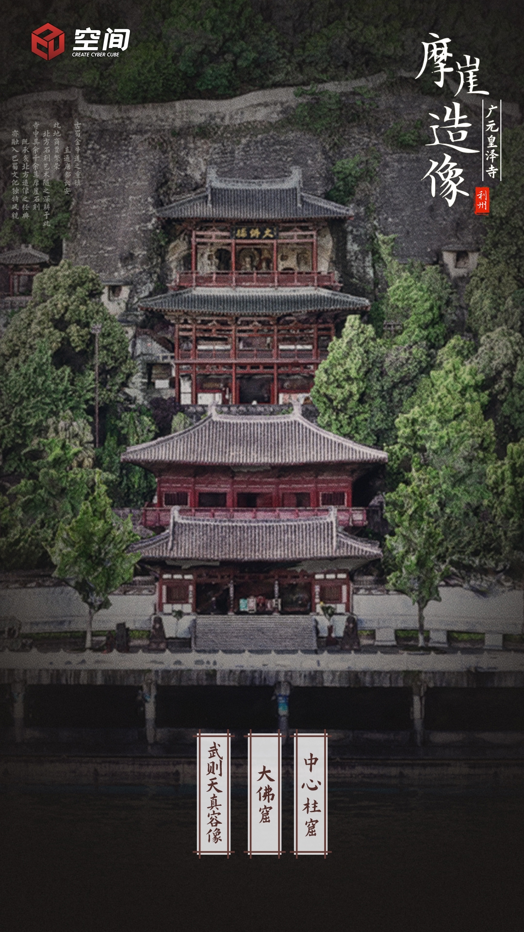 皇泽寺系女皇武则天仅有祀寺,寺内珍藏其唯一真容石刻像。