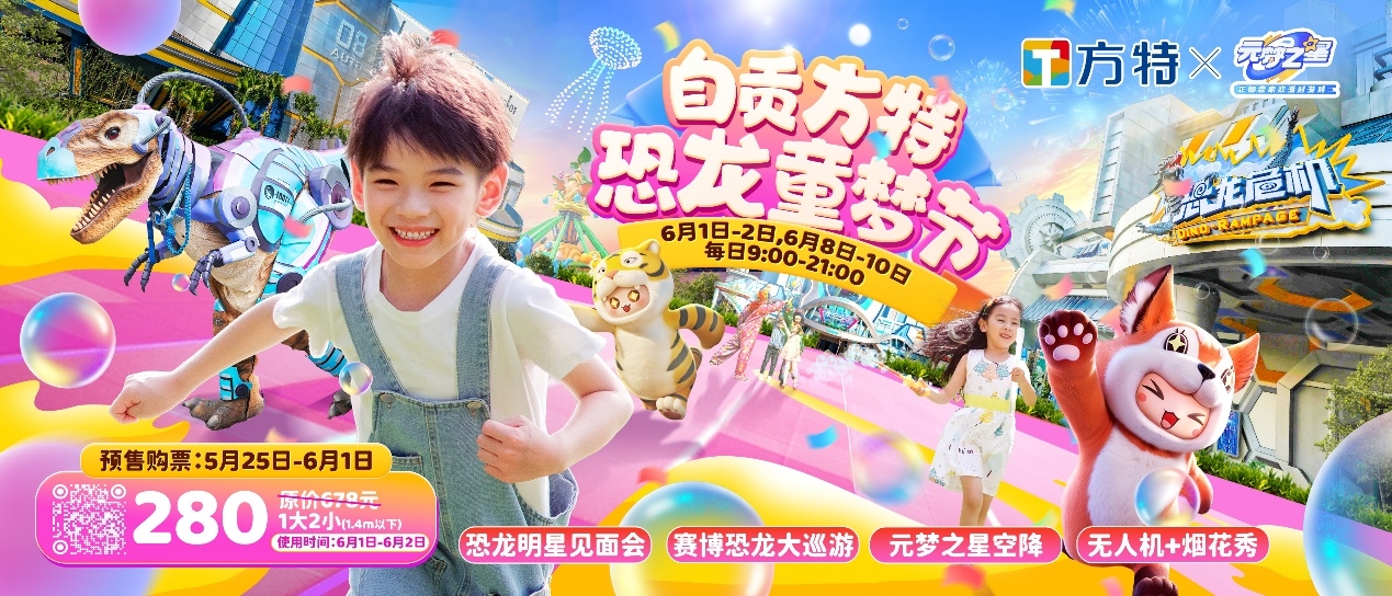 童心飞扬,欢庆六一。6月1日至2日,自贡方特恐龙王国将推出“方特恐龙童梦节”主题活动,带游客朋友们梦回童年。元梦线下派对、恐龙明星见面会以及主题夜场等众多精彩活动将轮番登场助力欢乐。
