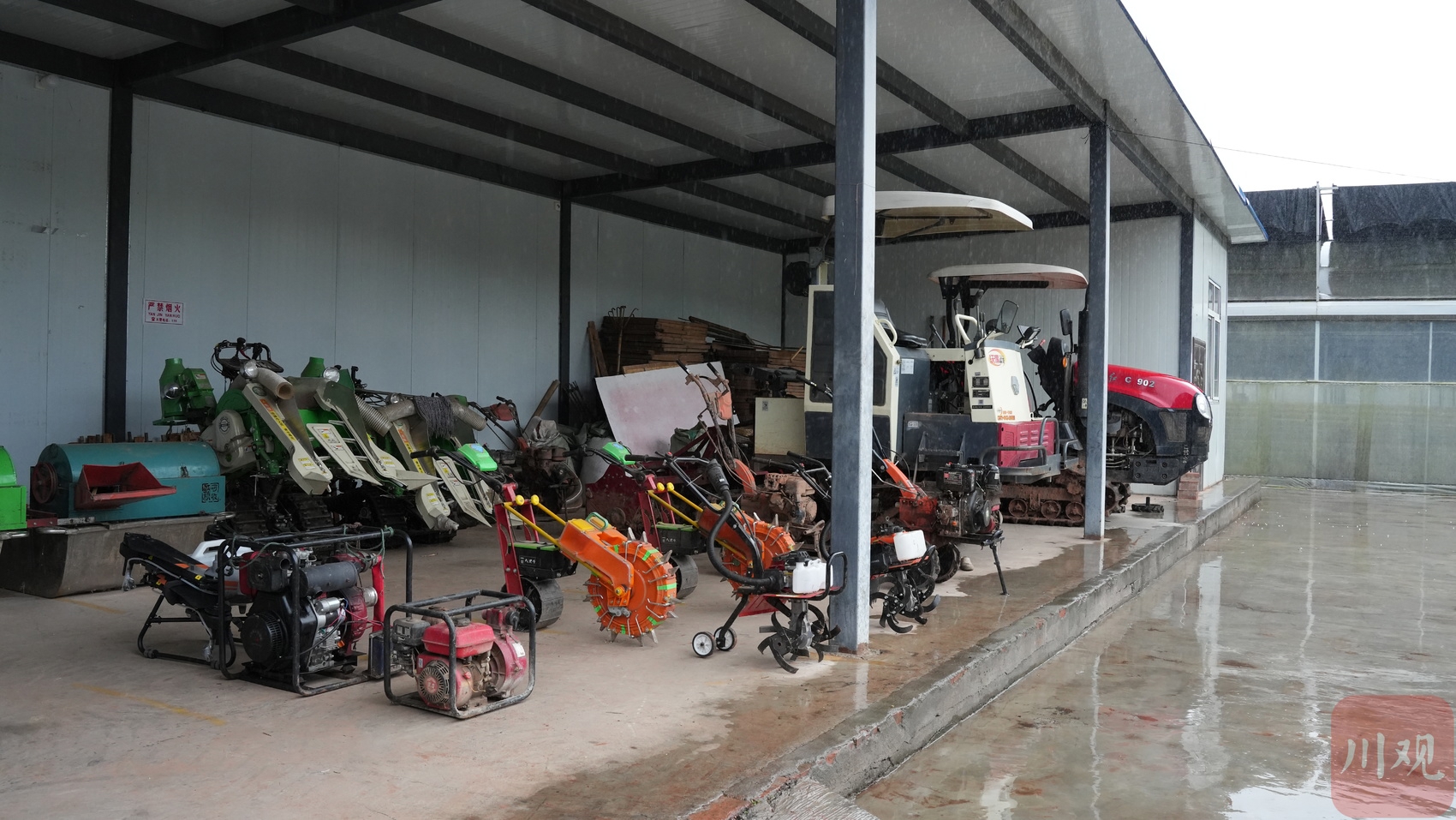 大规模种植背后离不开农业生产机械化、智能化水平的提升。在长宁县力行农机专业合作社,旋耕机、播种机、收割机等大大小小不同规格的农机具整齐排列,这些都是胡良银征服3000多亩农田的“宝贝”。“机械化生产帮助我们进行耕地、打地和无人机病虫防治等工作,减少了劳动力投入,也提高了生产效益。” 胡良银说。