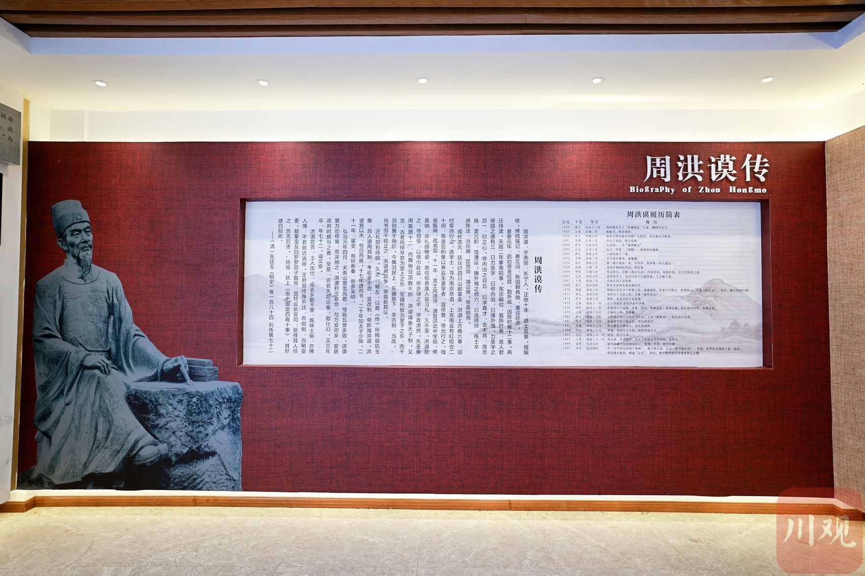 新落成的洪谟文化陈列馆内,丰富的文献资料和实物展示了周洪谟的生平事迹,他入仕46年,官至明成化年间礼部尚书,还乡后主纂《叙州府志》,一生践行“为国”“为民”“为儒”的理念。在馆内的明朝服饰展示和互动体验区,参观者还能穿上明朝的服饰体验打卡,亲身体验明朝的文化氛围。