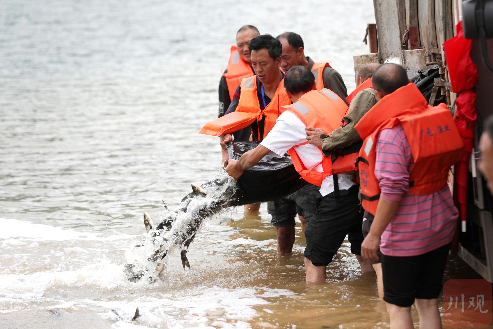 嘉陵江亭子湖放流鱼苗100万尾现场。高志农 摄