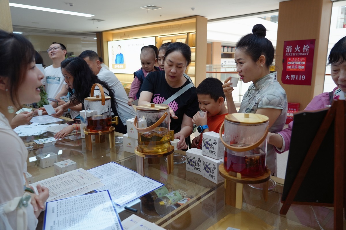 特别受欢迎的还有中药茶饮。“可以看到细碎的中药原材料,喝着有股淡淡的中药香味,味道还不错!”56岁的陈林女士一边喝茶,一边给同行的伙伴介绍。