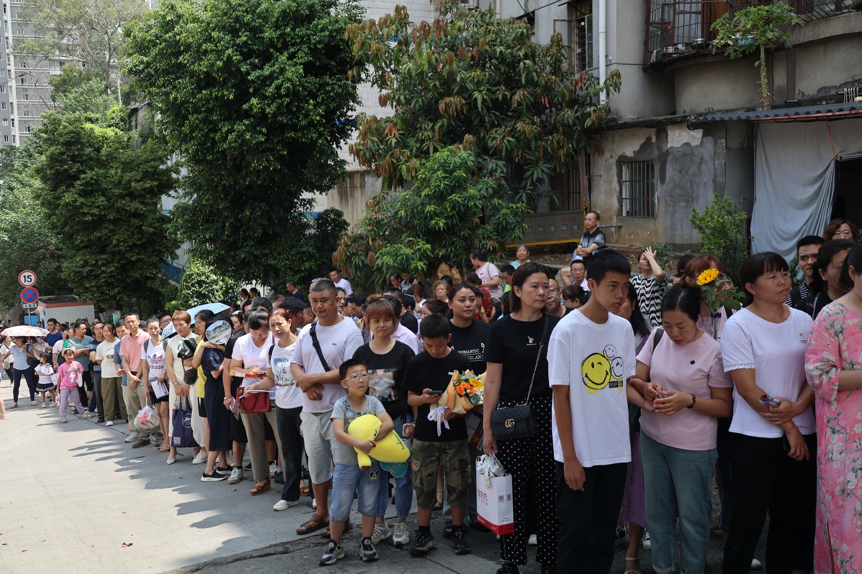 长长的接考队伍。韩嘉伟 摄