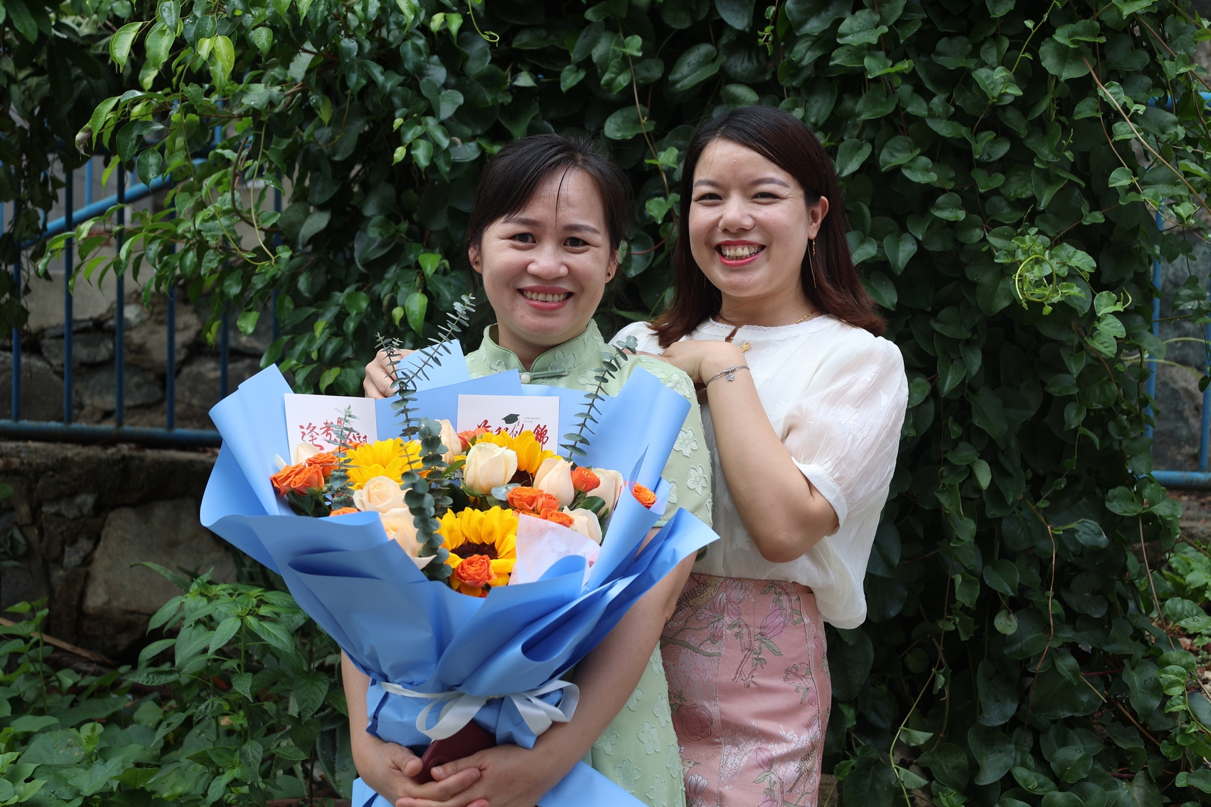 接考家长准备好鲜花等待考生。韩嘉伟 摄