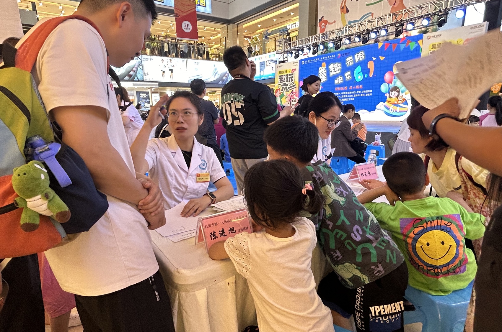 自贡市第一人民医院儿大科主任医师李雪梅,儿保科主任医师胡旭东,新生儿科主任医师陈华友,一病区主任医师林元涛,二病区主任医师官晓艳,儿童营养科主任营养师钟安君,儿童眼科主治医师张晓彧,儿童康复科副主任医师刘佳等,来自儿科、眼科、康复科、眼科的医疗专家现场坐诊,耐心地解答疑问,讲解健康知识,并给出专业的诊疗建议,周到而暖心的服务得到现场家长的认可。