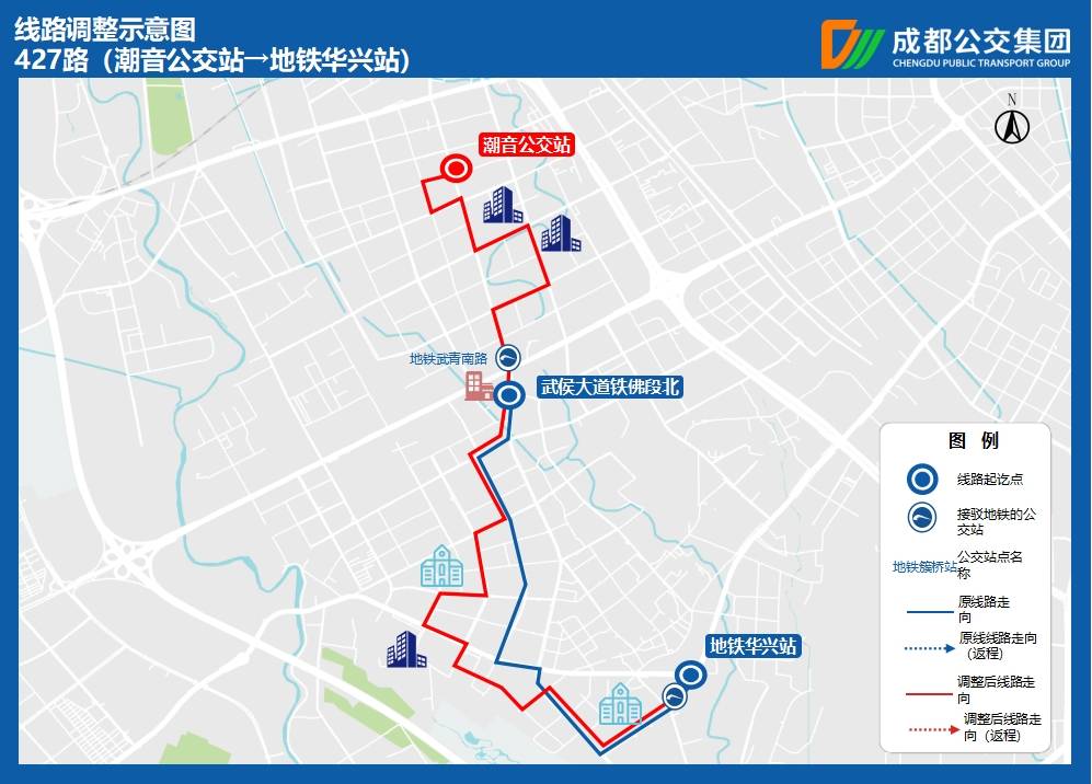 为加强西部智谷、她妆美谷与周边地铁站点、商圈及社区的公交接驳,拟将427路延伸至潮音公交站,覆盖1090路武青南路至武青西四路服务功能,优化后线路代码为427路,同步采用高峰定时准点发车、平峰需求响应模式运行,方便市民换乘地铁3号线、10号线,提升周边市民乘客出行效率。